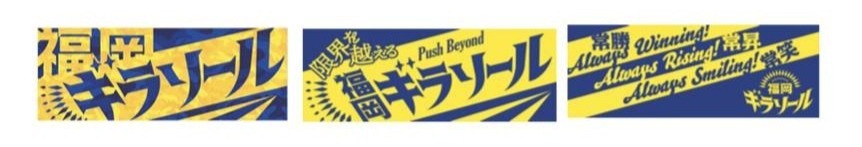 左から福岡ギラソール・タオル、シーズン・タオル①、シーズン・タオル②