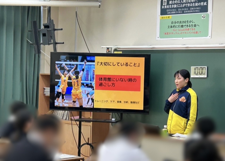 普段は保健体育の先生として生徒と接している森本選手が、自身のこれまでの歩みと、バレーボール選手としての情熱を語りました。