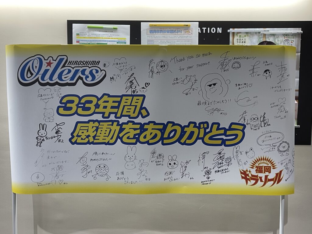 この記念すべき日に、広島オイラーズ、そして福岡ギラソールの両チームの選手たちから、感謝と情熱を込めたサインをいただきました。